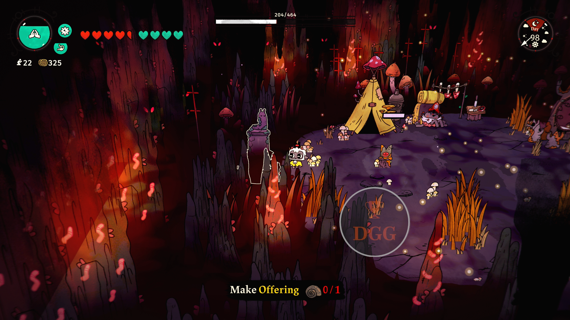 - The moon location is to the left of the merchant in Spore Grotto. The third meeting will require you to sacrifice two followers OR sacrifice half of one of your hearts. It’s important to note that sacrificing a heart is permanent.