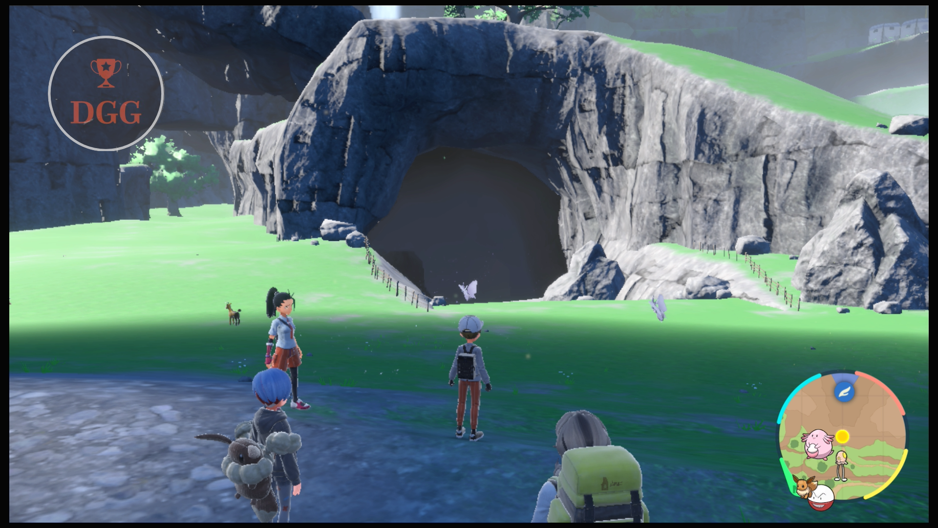 To begin, fly to Medali. Exit the town through the back exit to the southeast. Arven will have marked the objective location on your map.