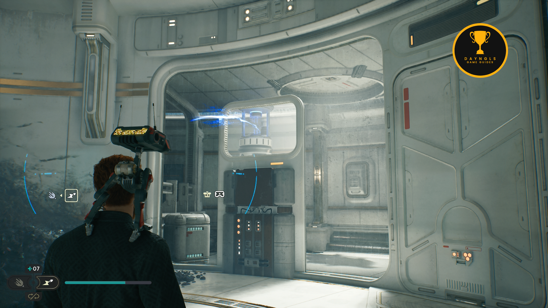 Continue following Bode and you’ll come to a console that you can interact with by using BD. Interact with it and then you’ll see a prompt on screen to use
