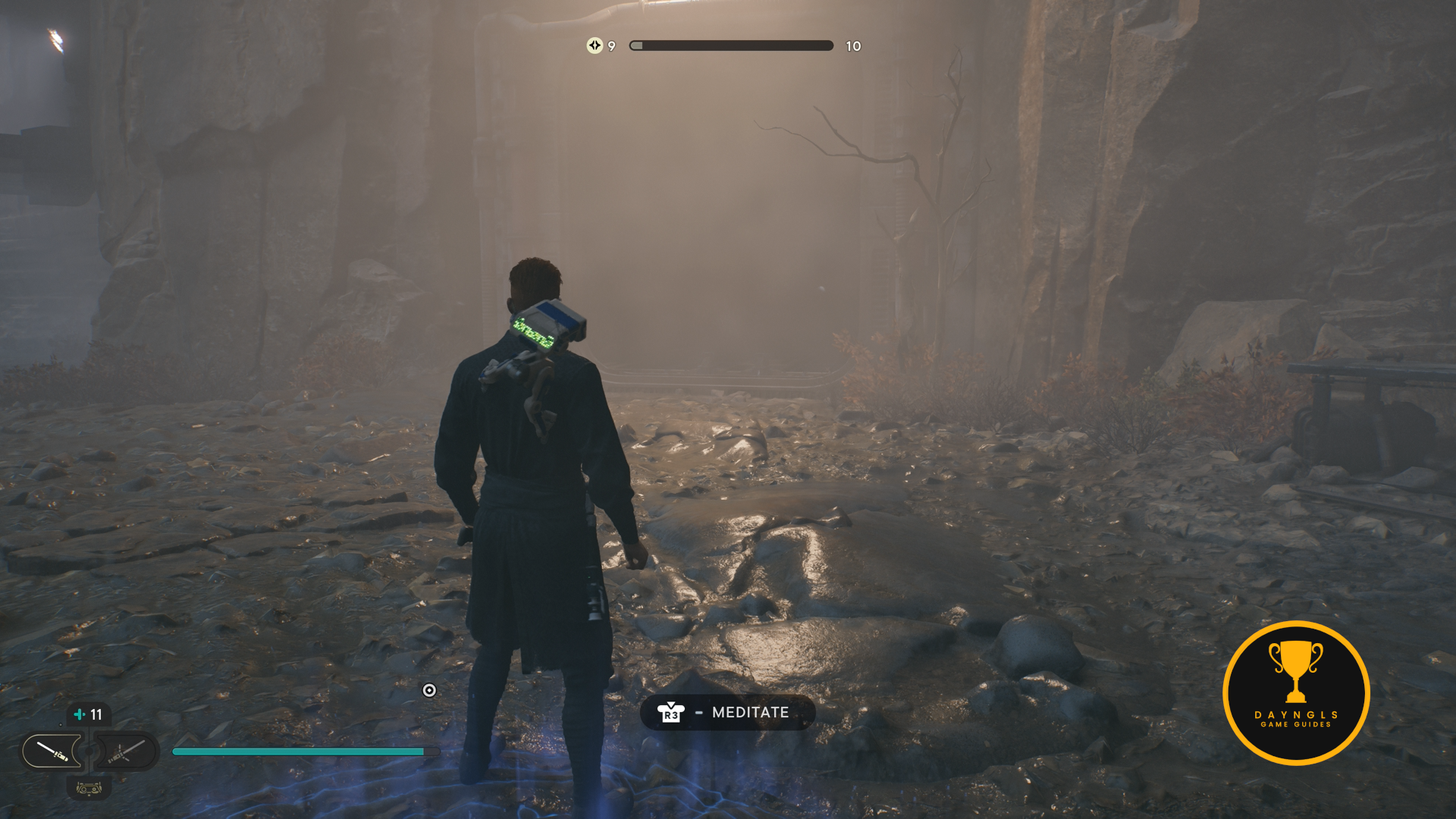 Enter the Smuggler’s Tunnels through Cal’s room. Go through until you see the second round green barrier. Dash through it.
