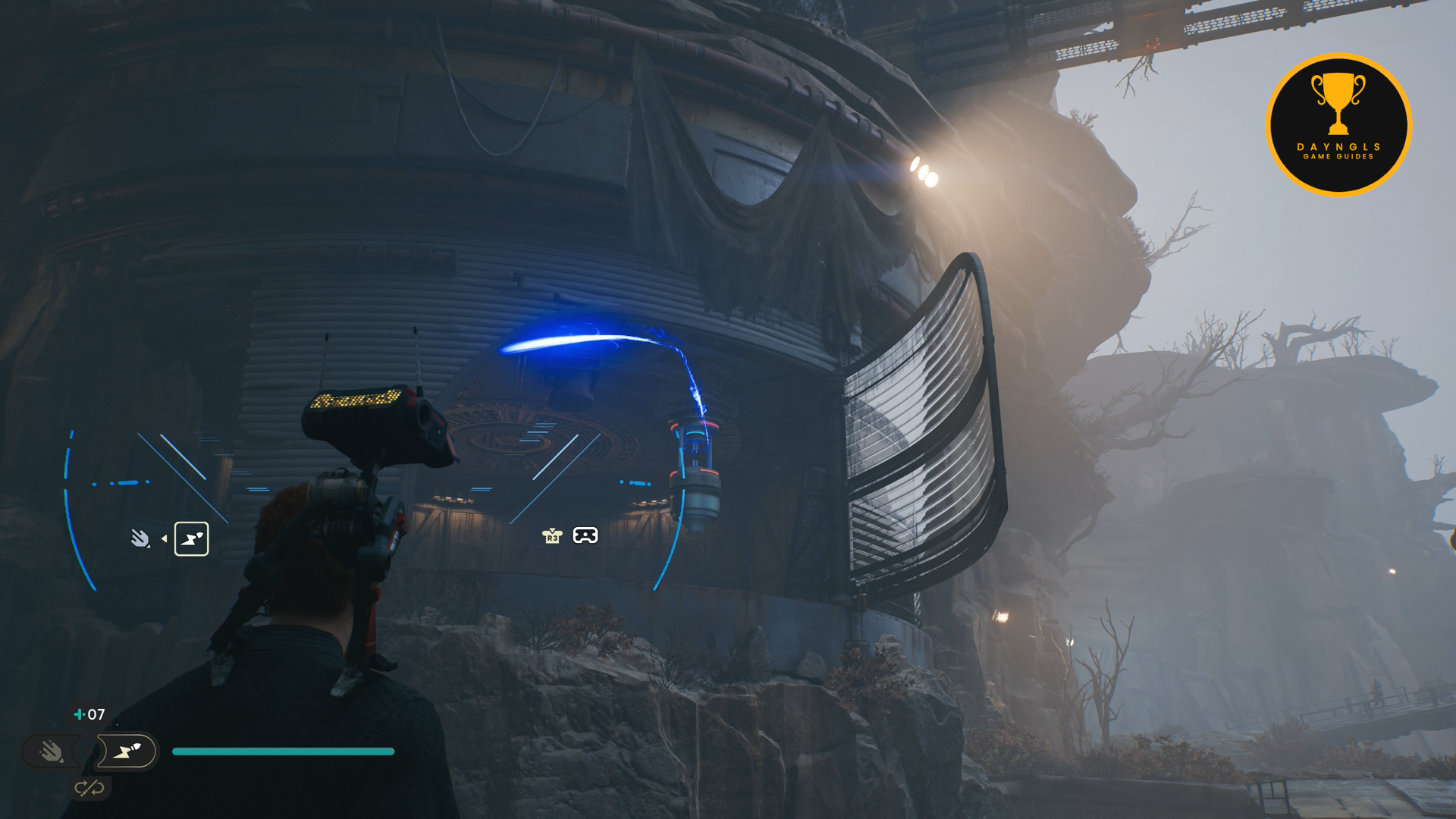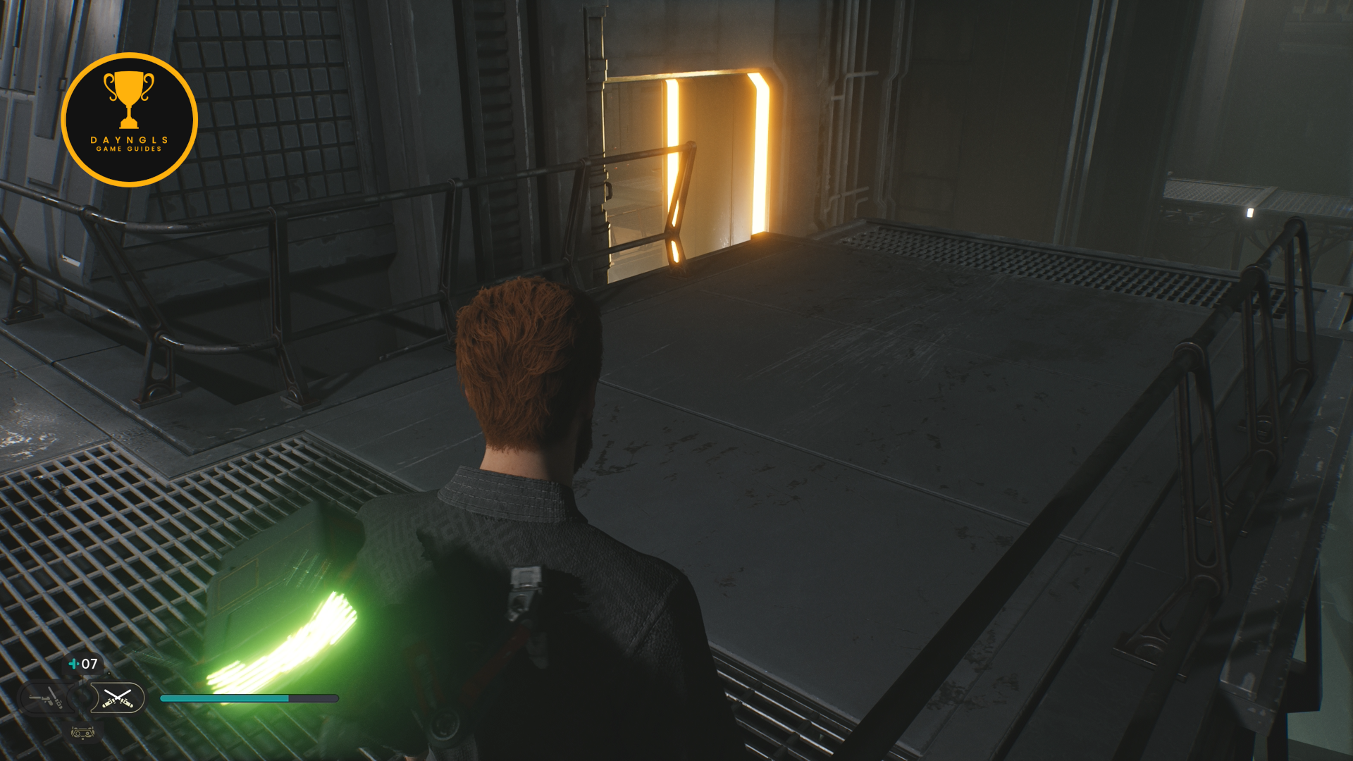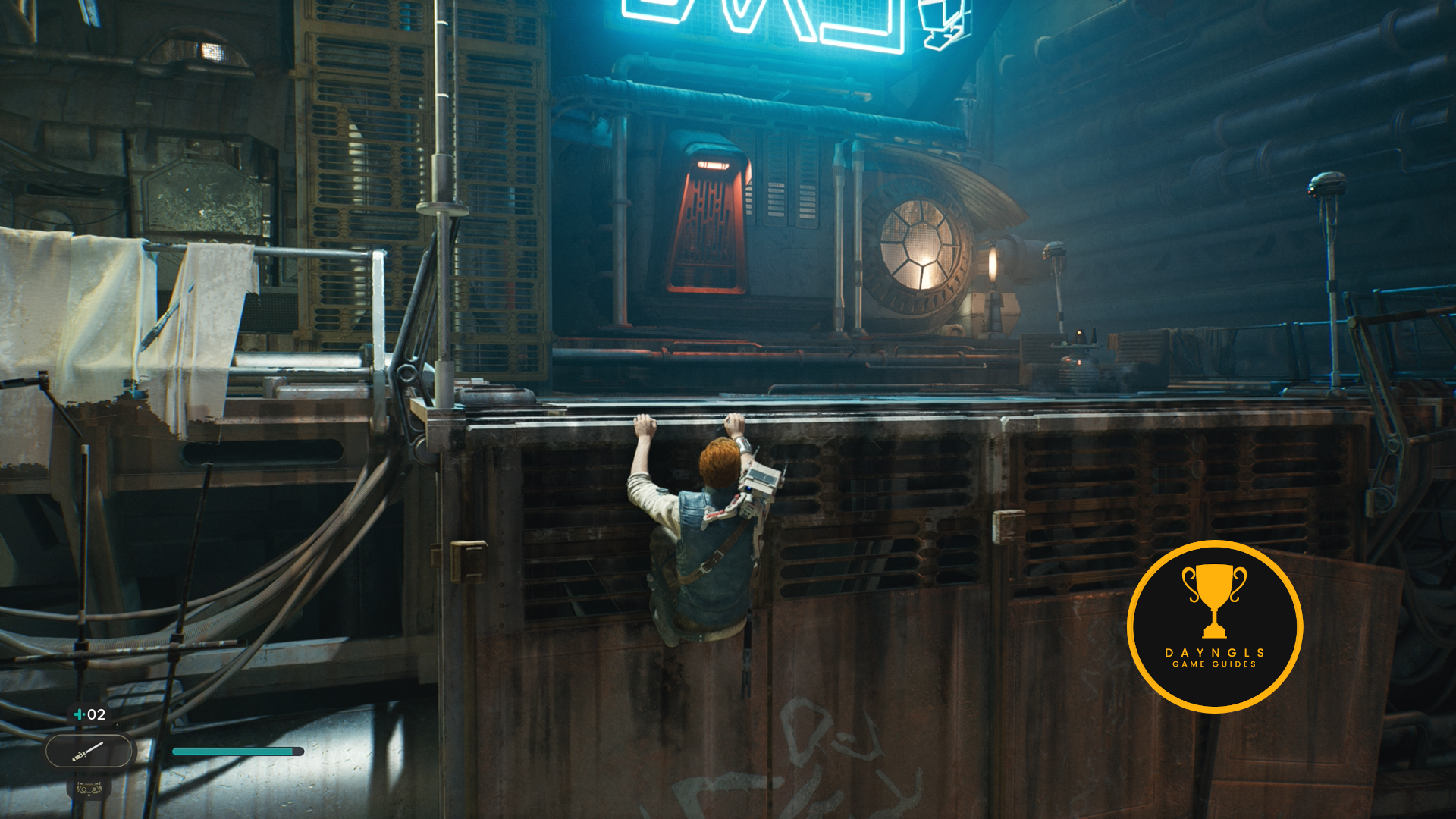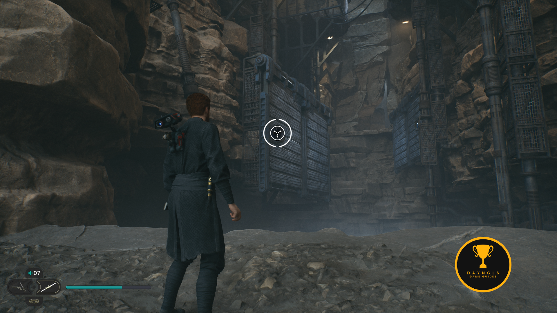 As the game begins, you’ll need to follow the CSF Officers. Follow them to your first combat encounter where you’ll learn the basics of combat in Jedi: Survivor. After a short scene, you’ll then need to platform your way up and around until you’re shot at and fall below.