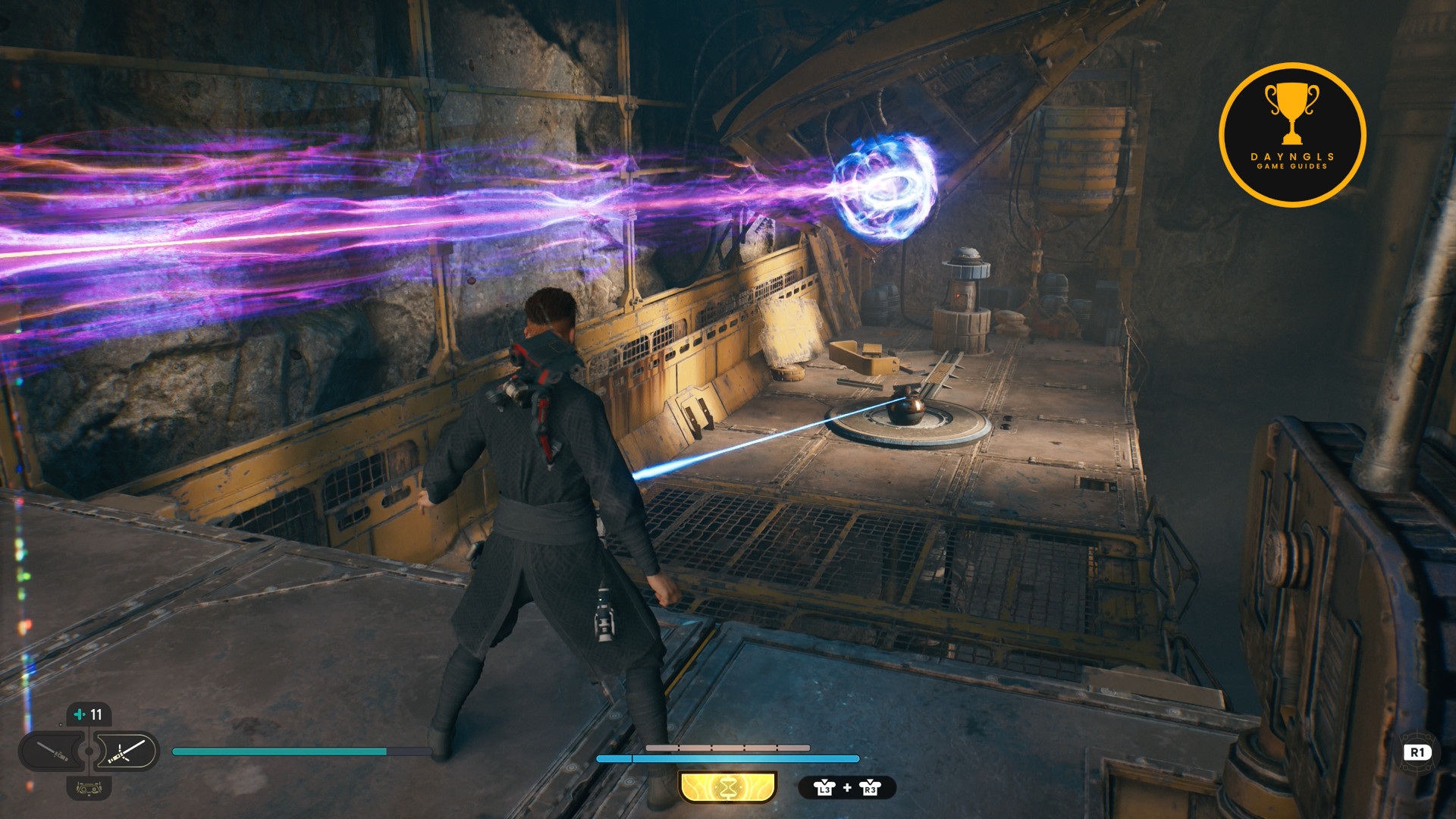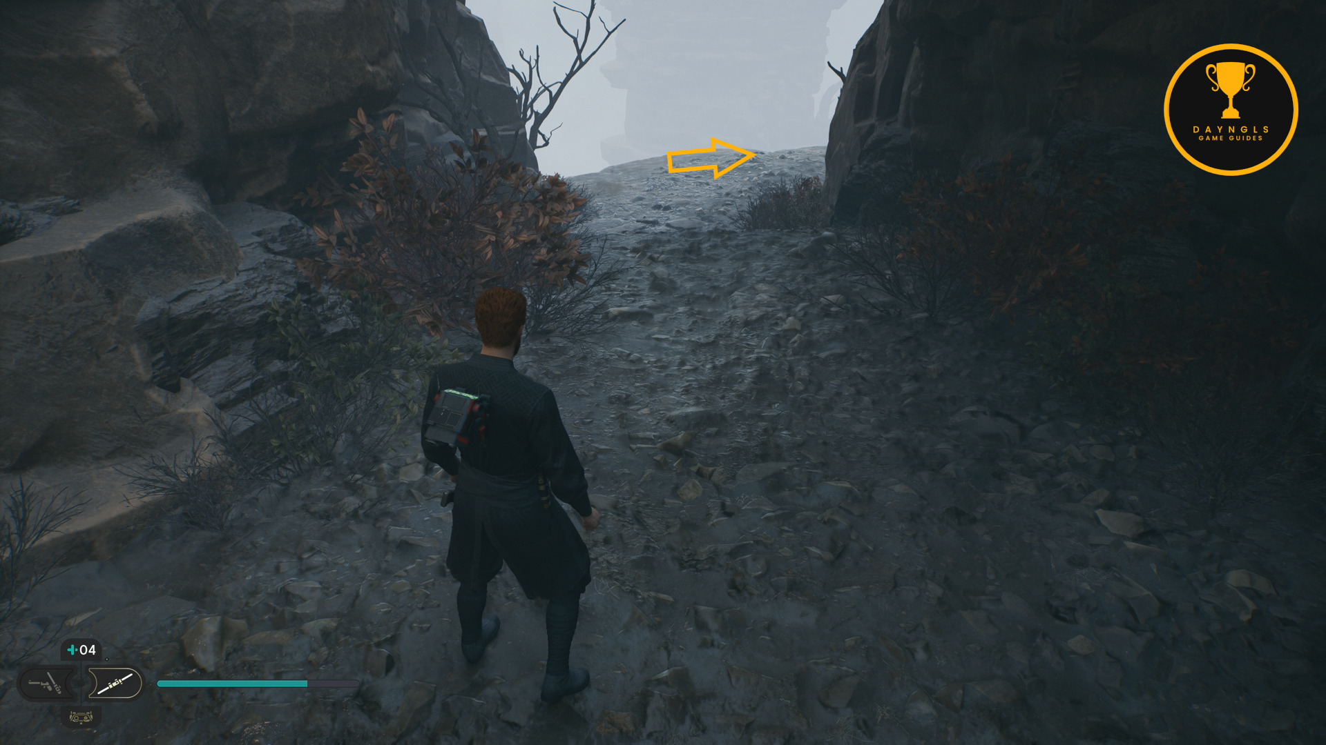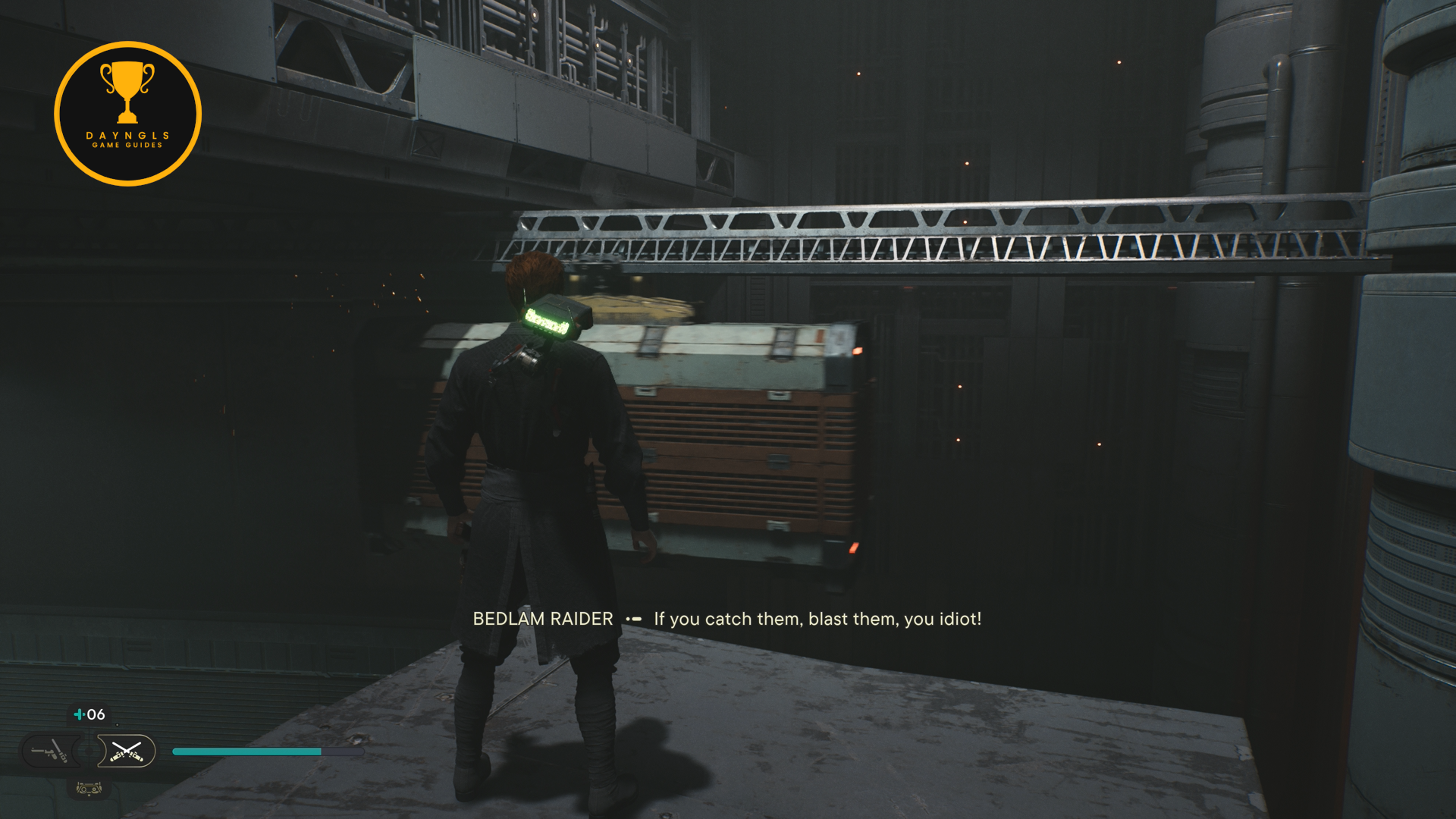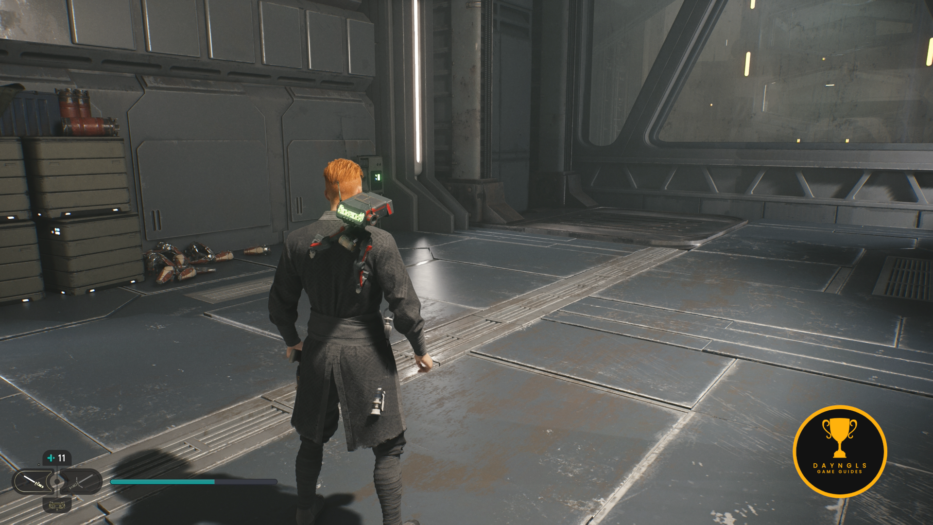As the game begins, you’ll need to follow the CSF Officers. Follow them to your first combat encounter where you’ll learn the basics of combat in Jedi: Survivor. After a short scene, you’ll then need to platform your way up and around until you’re shot at and fall below.