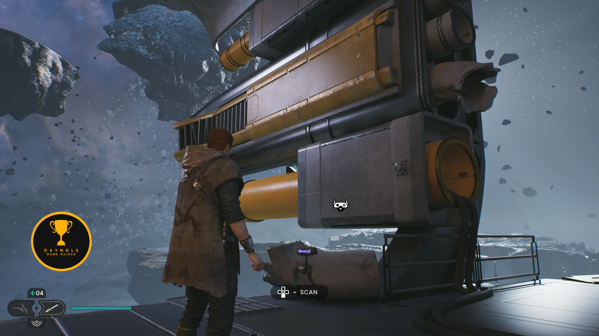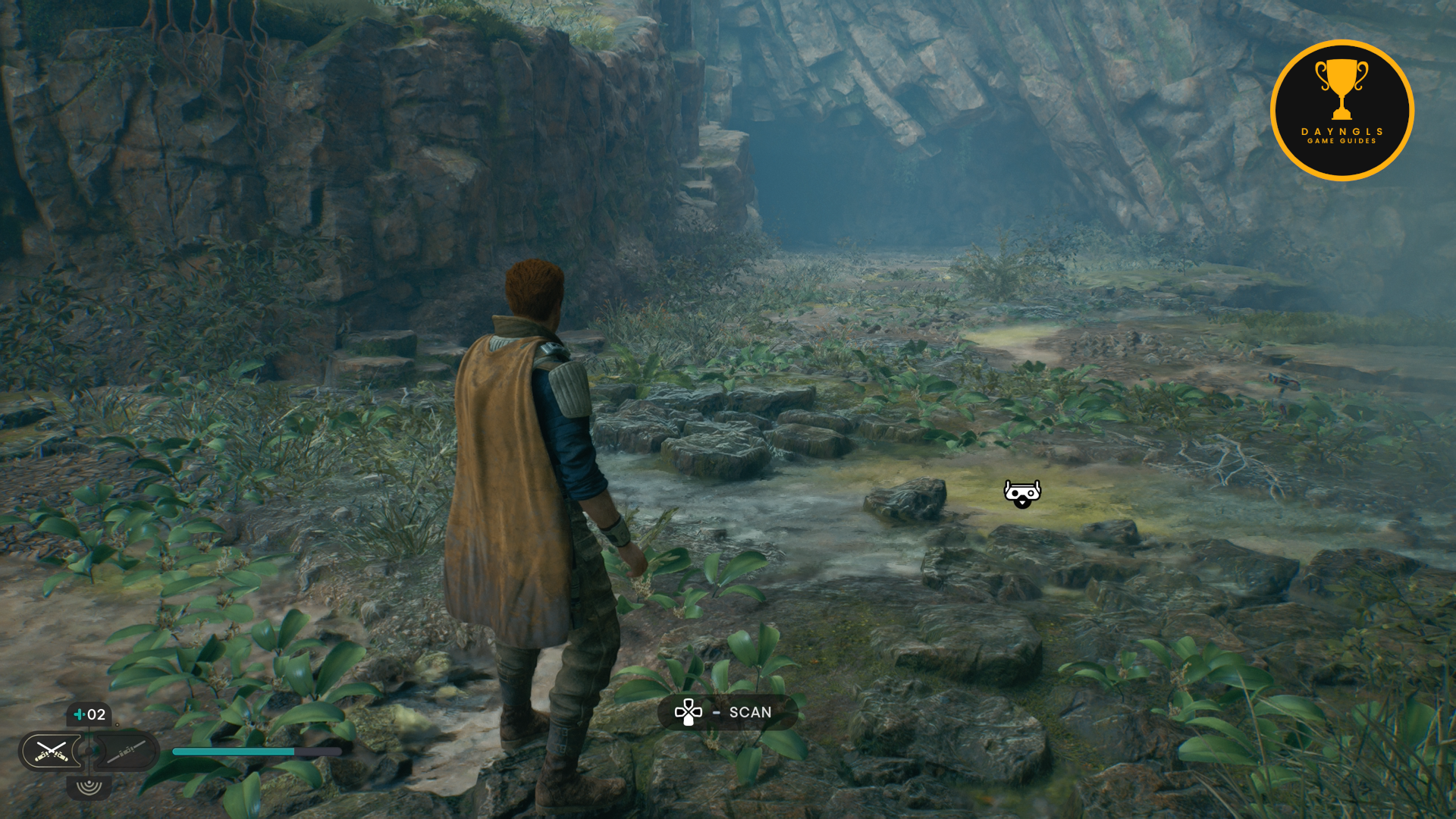 Grab the shard and then attack the enemies. Kill them and then make sure to scan the Raider Grunt to add it to your Tactical Guide. Continue deeper into the cave and you’ll come to a scannable object on the ground to your right.