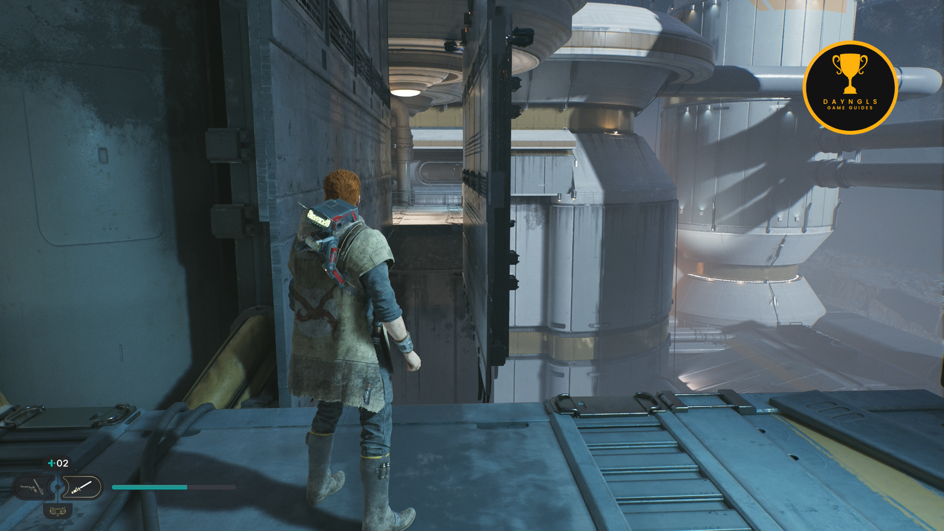 As the game begins, you’ll need to follow the CSF Officers. Follow them to your first combat encounter where you’ll learn the basics of combat in Jedi: Survivor. After a short scene, you’ll then need to platform your way up and around until you’re shot at and fall below.
