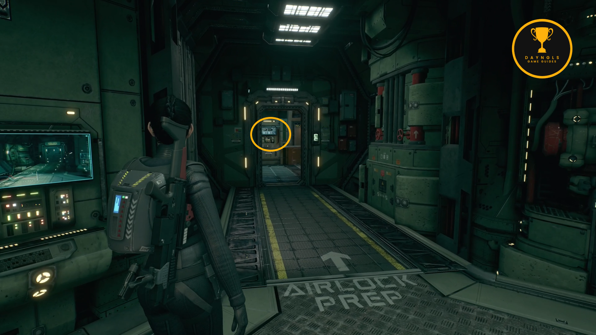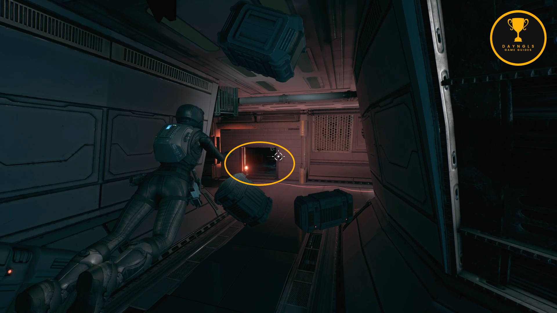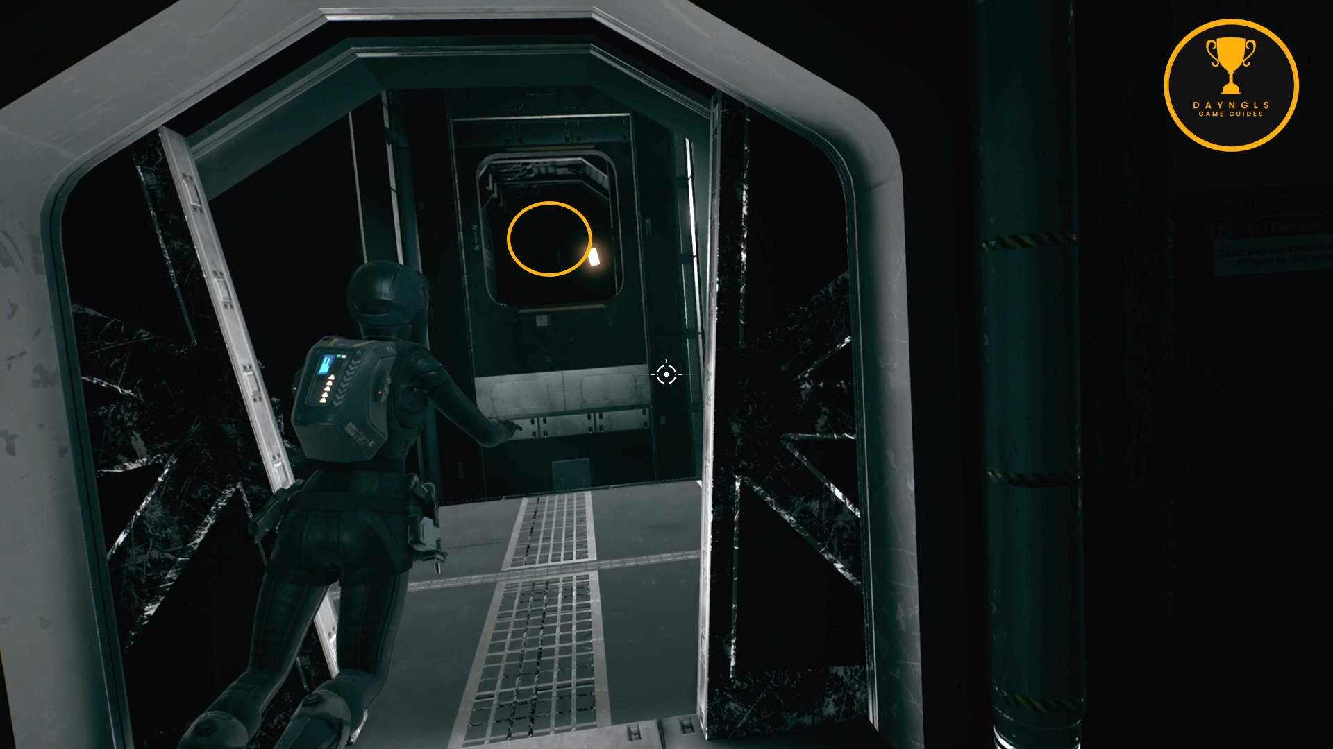 From the previous Trophy/Achievement location, exit the mess hall and go straight across to the med bay. Once inside, go through the door in the back of the med bay to enter Virgil’s room. Search his computer and then use the Data Cube Hacker to hack into his computer. Swipe through the 5 documents about Virgil and then back out. This will pop after reading the 5 documents on his computer and exiting it.