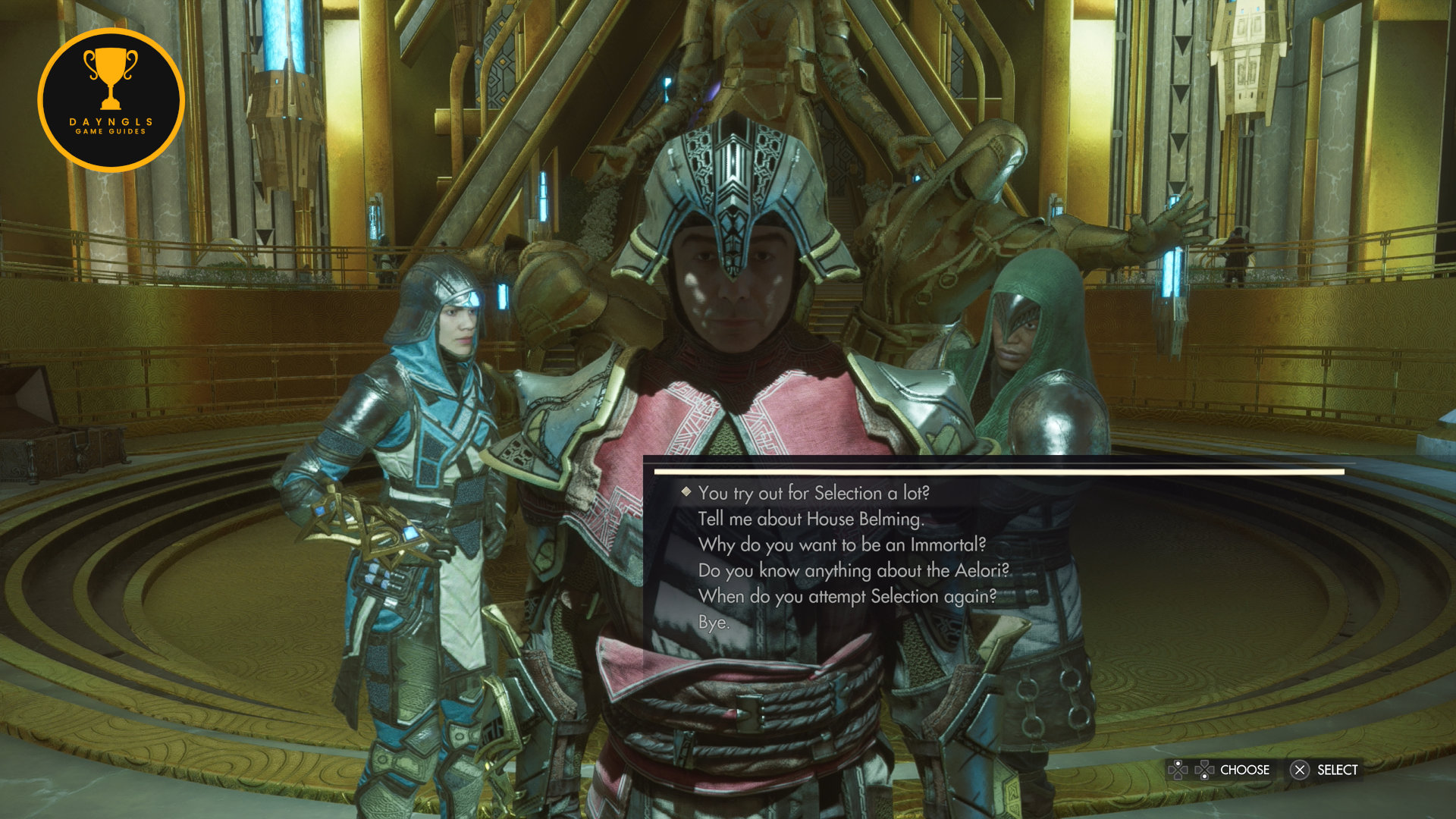 So you’ll need to make sure you speak to each of the characters every chapter you’re at the Palathon to make sure you get them all. When a new dialogue option appears, select it.